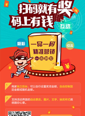 一物一码科技(广州)有限公司(电话:186-7635-5256),为全行业提供一物一码二维码红包系统方案。比如扫码领红包、抢红包、导购红包、积分红包等,促进销量的同时帮助商家获取防伪包大数据